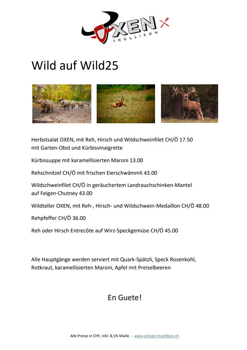 Oxenmetzgete!!!!! Freitagabend (ausgebucht) 10 Oktober, Samstagabend (ausgebucht) 11 Oktober und Sonntagmittag und Sonntagabend (ausgebucht) 12 Oktober.